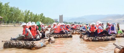 ▲古老的羊皮筏子漂流,悠美的景致,讓旅客沉醉其中。