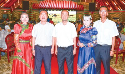 ▲通湖草原旅遊總經理張曉毅( 左 3)、副總經理韓福華(左2)、總經理特助趙金鎖(右1)。