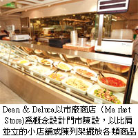 Dean & Deluca的熟食區並非一般提供熱食的地方,而是提供能讓消費者在家舉辦派對、聚會所食用的成品或半成品熟食。守谷祐一說,這些熟食只是「單一元件」,Dean & Deluca鼓勵消費者買回家後發揮自身想像與創意,重新拼湊、擺放、烹煮成各式各樣具有個人特色的派對菜,透過這些銷售心思,Dean & Deluca巧妙帶進歐美DIY文化的生活態度,也是同類食品店少見。