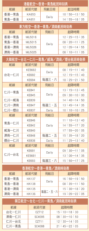 5大航空公司山東航班一覽表