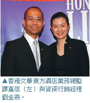 香港文華東方酒店 已是香港地標之一的文華東方酒店,以「提供量身定做服務」搶攻獎勵旅遊市場,酒店內設有可容納600人的宴會廳,與10個大小不一的多功能會議展廳,可依客戶需求設計全天或半天的或會議或主題聚會。