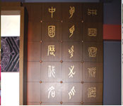 進入中國歷代名媛館以後會看見三種古文,其中,中間的文字是古代母傳女的文字,是古代女子相互傳遞訊息時所用,有時會將字繡在絲絹上,傳達訊息,這樣的女性文字至今已經失傳。