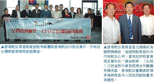 香港航空董事總經理 李強香港航空南昌航線的開通,是香港與江西兩地政府共同運籌帷幄的結果,李強表示,「南昌航線非屬利潤航線,但透過此航線,香港航空實現與其他航空公司不同的社會責任。因為,在此之前東方航空每週4班航班,香港航空加入後每天都有班機往返香港、南昌之間,將強化串聯南昌與香港、台灣、澳門等其他地區的往返互動,促進江西經貿發展與觀光旅遊的推動。」短期來看,南昌線的開航雖與航空公司收益期望略有牴觸,但長遠來看,李強對該航線營收成長抱持相當樂觀看法。