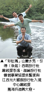 事實上,以經營、商機的角度來看,目前台灣赴陸旅遊市場相當成熟,唯有避免削價、開發新品,才是維持合理利潤的不二法門,而隨著香港航空南昌線的開通,江西旅遊對台推廣的大門已然開啟,當地豐富的旅遊資源,適合打造多層次而主題不一的產品,業者實應把握切進旅遊市場的嶄新契機。
