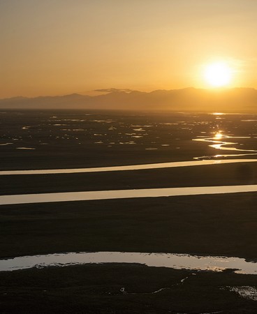 ▲九曲十八彎位於巴音布魯克大草原,每當夕陽照射在河道和草原上,展現出最絢麗迷人的光彩。