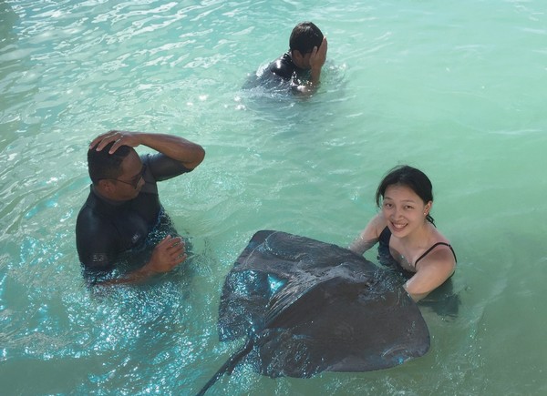 Sea Touch海洋基地位於悅泰度假村飯店(Fiesta Resort & Spa Saipan)旁的近海,這裡有著大大小小共9 條溫馴的魟魚,魟魚又稱魔鬼魚,這裡的魟魚已經 將其有毒之刺去除,故百分之百保證安全,在這裡 您不僅可以近距離觀察魟魚生活的環境,還可以親 自與牠們互動,相當驚奇有趣!