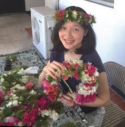 Mwaar是塞班島當地在節慶時會穿戴的花冠,也是塞班人一定會製 作的傳統裝飾品,林語萱(Sherry)在到達塞班島的第1天就在副局 長辦公室體驗Mwaar製作,為自己接下來的旅程編織最美好的心 情。而指導員也大力稱讚林語萱的巧手,讓Mwaar有不同的風貌。