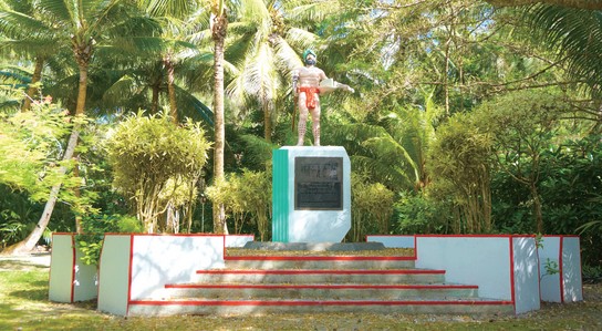 軍艦島周長不到2公里,遊客可 以徒步環島,還能拜訪當地的酋 長雕像喔。