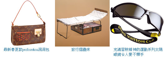 或許對一般非愛好精品的消費者來說,LV不過就是一個名牌的名字,一旦探究其背後的意義及歷代創造的商品,無一不是從旅行哲學概念為設計商品的出發點。令人驚訝的是,旅行箱的設計突破多得令人想像不到,例如:創造出可放置整台馬車的行李箱、可懸掛衣物和放置珠寶的衣櫥式行李箱、打開箱子即可組裝成行動辦公桌的行李箱、可帶著雲遊四海的床組行李箱、能隨處席地品啜下午茶的行李箱等各種旅行式家具,除了在專門店可訂購,為迎合每個買家的需求也可量身訂製。