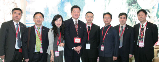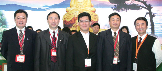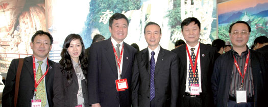 ▲旅展期間,海峽兩岸交流協會副秘書長范貴山(左4)與亞洲旅遊交流中心主任林山(右1)特地前往各攤位為此次來台參展的大陸業者打氣 ,經過貴州省攤位時,特與貴州旅遊協會副會長兼秘書長楊俊(左3)及貴州代表合影。