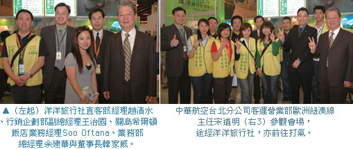 以歐美線奠定市場知名度的洋洋旅行社,繼去年「奢華旅遊」主題後,今年再度推出多個市場優質產品,為刺激現場買氣,推出報名就送旅行箱的優惠活動,吸引大批民眾詢問。業務部總經理余建華表示,今年洋洋旅展期間銷售狀況,凸顯M型社會造成購買行為呈現兩極的現象,因為全線產品中又以偏屬高單價的紐西蘭包機詢問度最高,這應是年底正值紐西蘭最佳旅遊時間,加上頂級產品策略奏效有關。此外,深具口碑的印度與關島系列產品表現亦不俗。