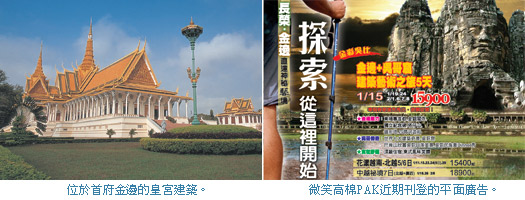 長榮航空客運本部營業部團體三課課長陳重君表示,長榮PAK「微笑高棉」至今已成立4年,4年來深受多方好評且出團穩定,春節期間更是締造團團爆滿的佳績。陳重君說,雖然直航,但透過金邊進柬埔寨,對於首次旅遊此地的遊客,探訪這不同的文化國度可說是由淺而深漸進式的激盪心中感受,不似歐洲的古文明,這裡給遊客的感動是在物質層面的滿足後,更高一層提升旅遊的心靈層次。