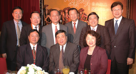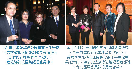 ▲(後排左起)台灣觀光協會副秘書長林健達、鳳凰旅行社董事長張金明、JTB總經理廖高義、帥王溫泉大飯店王孝典、劍湖山世界總經理特助鄭虞坪、點水樓陳進益;(前排左起)四川省旅遊協會副會長張令祥、中信旅遊總公司副主任李新彥、副總經理季若荔。