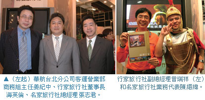行家/名家旅行社於旅展期間針對公主遊輪系列產品、阿拉斯加極光之旅、青藏高原鐵路之旅等,推出減3千~5千不等優惠價,並有「三重大贈送」活動~旅展優惠價、媚婷峰集團長春藤健康中心全方位身體檢測、精美禮物或行李袋。