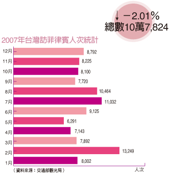 菲律賓觀光部針對2008年在台灣推廣活動,除了宣傳馬尼拉、宿霧、長灘島、佬俄等大眾熟知的產品之外,也積極開拓新的島嶼。菲律賓觀光部觀光代表雷亞司指出,菲律賓有7,100個島嶼,皆有不同風情、生態。目前菲律賓已積極開發「BICOL區域」不但有主題樂園,更可出海看鯨鯊等活動,非常適合戶外活動的旅客。另外,宿霧太平洋航空將於3/26首航宿霧—長灘島,屆時將提供旅客更便捷的旅遊方式。