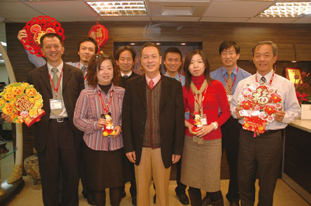 ▲盈達旅行社總裁汪良基(中)與團隊敬祝同業新春愉快。