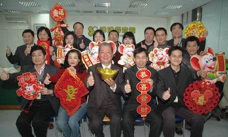 ▲洋洋旅行社董事長韓家威(前排中)率領團隊向同業拜年。
