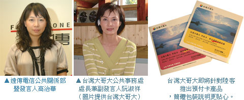 針對預付卡產品方面,目前台灣大哥大也已針對陸客擬定兩種產品,一為預付卡「台灣大哥大手機卡」,分為90以及500元兩種面額,另外一種則是國際電話卡「寶島行IP卡」。阮淑祥表示,預付卡適合與台灣或是其他海外地區通訊需求較強的使用者,若是用量不多,僅需打回大陸的旅客,則建議使用國際電話卡,可享有相當優惠的費率,同時在市話電話也都可使用。目前由於法令規定購買預付卡需要入出境許可證以及護照或大陸居民往來台灣通行證,因此目前也正考慮與旅行業者合作,未來應可交由旅行社銷售以及代辦,讓旅客更為便利。