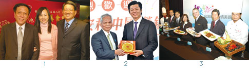 3.(左3~6)台北喜來登餐飲部副總盛緒平、台灣安麗總經理陳惠雯、喜達屋集團台灣區區域總監Josef Dolp、新天地集團董事長歐敏輝聯手為陸客端出台灣美饌。