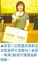 自5╱1∼11╱30止,消費者只要入住菁鑽聯盟旗下成員飯店或租車,即可免費加入會員並獲得會員集點卡一點,集滿二點就可獲得摸彩券一張,首獎為一人獨得菁鑽聯盟10家飯店的頂級豪華套房住宿及6張格上租車券,並可以一整年盡享五星飯店頂級套房之專屬尊榮。除了此一最大獎項外,還有各家飯店住宿券等多樣超值好禮,既可做環保觀光又可抽好康。