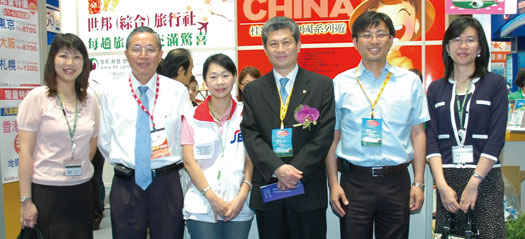 2. 華航台灣地區處長余劍博(左3)、華航台北分公司客運營業部經理賴祥光(左2)、雄獅旅行社大陸線協理劉鳳鳴(左4)、雄獅旅行社票務部協理陳碧松(左5)、華航台北分公司客運營業部副理李明彥(左1)。