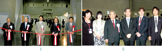 1. 「YOKOSO! JAPAN Travel Mart 2009」剪綵儀式。(左起)日本觀光協會會長中村徹、國際觀光振興機構(JNTO)理事長間宮忠敏、國土交通省觀光廳審議官西阪昇、橫濱市經濟觀光局推進擔當理事池田維介、買家代表(韓國)。