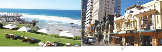 1.德班臨海的美景,每年吸引無數遊人。2.德班市是夸祖魯納塔耳省內的商貿首善之區。
