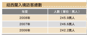 在2008年紐西蘭國際旅遊產業的消費額已經超過了61億紐幣,這個數字相當於紐西蘭外匯收入總額的18.3%,在紐西蘭的經濟發展上扮演著重要的角色。