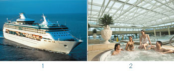 1.海洋神話號擁有水療健身、泳池、高球場、劇院、圖書館、娛樂場、商店街等設備。