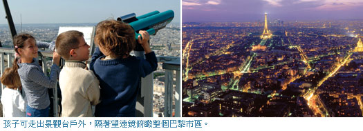 和國內著名新地標101大樓一樣,也以樓層總數命名的蒙怕納斯大廈,目前是巴黎最高建築,有「巴黎屋脊」之稱。整修後的蒙帕納斯大廈56層去年重新開放,僅需38秒即可登高望遠、一覽花都。室內設有互動介面的電腦遊戲,親子可一起參與測試,圖片廊還有巴黎往昔的照片展示。每年平均有50萬名觀光客,光是去年一整年就超過110萬人到訪,另有中文網站:www.tourmontparnasse56.com。