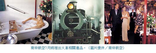 南非航空7月即將推出的「非洲之傲豪華列車跨越南非浪漫貴族十日之旅」,規劃由約翰尼斯堡出發,銜經太陽城、比林斯堡野生動物保護區、坐上非洲之傲列車Rovos Rail後進行三天兩夜從普利托力亞至開普敦,行經鑽石之都金伯利、馬濟斯峰登古鎮,跨南非貴族之旅近期將召開旅遊同業說明會。