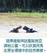 聖路西亞濕地公園( St.Lucia Wetland NP)是南非第一個世界自然遺產, 奇範圍涵蓋了整個聖路西亞湖(Lake St Lucia)、聖路西亞(St Lucia)、Maputaland 海洋保護區、沿海森林保護區和Kosi Bay自然保護區。公園有280公里近乎原始的海岸線,包含了多種動植物生活環境,諸如珊瑚礁、海灘和沿海森林等。對於數量眾多的河馬和鱷魚,以及其他保護類動植物而言,保護區就是它們繁衍生息的家園。