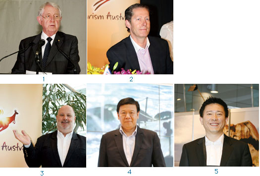 1.澳洲觀光局局長馬丁佛古森2.澳洲旅遊局行政總裁安德魯麥克沃伊3.澳洲旅遊局國際執行總經理理查比爾4.澳洲旅遊局北亞區總經理倪建華5.澳洲旅遊局大中華區行業發展主管經理陳智文