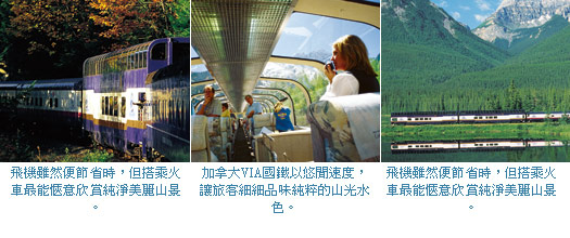 廉價航空的崛起,強化美加與歐美地區旅遊的便利性,然而若想深入探索這兩塊旅遊資源相當豐富的大陸地區,「火車」無疑是絕佳選擇。以長程線起家的加加旅行社早在1998年就跨入火車旅遊的領域操作,起初搭配加拿大國際航空(CP)推出火車之旅,累積足夠市場知名度後緊接著推出歐洲火車之旅的行程。