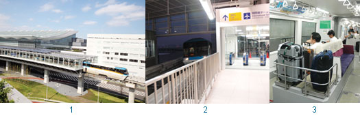 1.東京單軌電車與國際線航站共構車站月台與出境層無段差。(圖片提供>TIAT)2.東京單軌電車月台與機場出境層無段差,到Check-In大廳只要1分鐘。3.單軌電車車廂內設有行李架,方便旅客輕鬆安置。