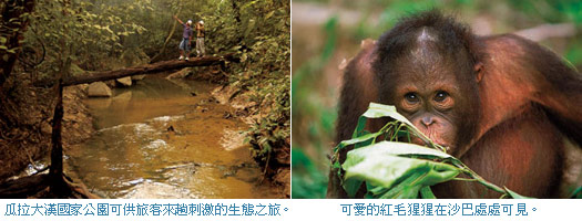 另外,在中馬地區的「瓜拉大漢國家公園」(Taman Negara National Park)是馬來西亞境內最受歡迎的國家公園,這兒的風光明媚,在占地4,343平方公尺的園林面積裡,有著覆蓋著森林的高原、高聳的山峰以及清澈的溪流。艾芝藍簡單介紹一下國家公園的活動,「園中有好幾道小徑供旅客走一趟森林之旅,公園總區附近也有許多供觀察生態的隱藏處。此外,還有許多引人入勝的活動可選擇,如在森林中漫步、仔細觀賞動植物生態~大象、野生水牛、馬來貘、鹿及野豬等都會在這裡出沒,或是安排河面之旅或釣魚之旅。」