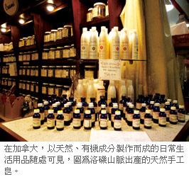 除了尊重環境與重視休閒活動外,楊春玉進一步指出,亞伯達省以農業、畜牧業為主,當地出產的牛肉聞名遐邇,為了讓牛隻或其他動物吃到乾淨的草皮,牧場主人與牛仔們除維持自然簡樸生活,也自動自發使用不添加含化學成分的肥料;為了保持水的潔淨與自然資源的純淨,當地也竭力落實做好環保,出產的礦泉水在國際評比中名列前茅。此外,「手工風」盛行,例如有一種名為「Rocky Mountain Soap」的純手工皂,就是以天然原料、依循古法製造而成,也因為數量有限,因此僅在Banff與Canmore兩地販售;此外,這裡還提供有機巧克力、楓糖漿等的自然品,楊春玉說,「強調原汁原味的飲食或生活態度,竭力維持大自然原來的樣貌,就是加拿大人愛護地球、回饋地球的方式。」