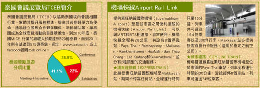 泰國會議展覽局主席阿卡彭. 蘇拉素差(Akapol Sorasuchart)指出,泰國不僅擁有各種豪華的酒店和卓越的會展場所,更擁有世界一流的購物環境、美食餐飲及便捷交通,能為MICE活動加分。
