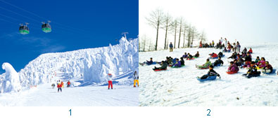1.如雪怪般的樹冰,每一尊都有其獨特的姿態。(圖片提供>山形縣)2.近年來韓國冬季的雪上活動越來越受歡迎。(圖片提供>韓國觀光公社)