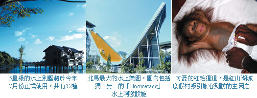 紅山湖城度假村開幕迄今已有超過300萬人次造訪,不但如此,吳金龍表示,「紅山湖城度假村也成為各大公司企業的家庭日最佳出遊地點,同時也是當地各婚宴喜慶的最理想地點,相信旅客人數將與日俱增。」此外,紅山湖城度假村最有名的地方就是水上樂園,吳金龍指出,「水上樂園佔地超過11畝,是北馬地區最大的水上樂園,園內設有各式齊全的遊樂設施,包括獨一無二的『Boomerang』與多項水上遊樂設施以及一座大型的兒童娛樂區。另外,園內還有雙人座纜車可讓旅客位居高處一覽水上樂園的壯觀景致。」喜愛高爾夫球的旅客更可以前往「太平高爾夫球及鄉村俱樂部」,在綠草如茵且依山傍水的球場上享受揮桿樂趣。