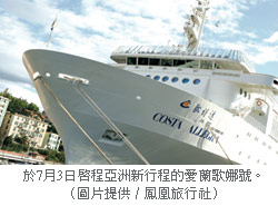 看好這塊市場的歌詩達郵輪樂於率先開創市場,也希望吸引其他郵輪公司相繼投入,進而壯大亞洲郵輪市場。或許義大利人天生正面思考、樂觀看待的特質使然,華德高說:「過去在美洲推廣遊輪產品時,當地旅客接受度也相當低,但歌詩達郵輪戮力經營近20年之後,郵輪旅遊成為美洲旅遊顯學,相信郵輪的魅力同樣能在亞洲迅速發燒。」