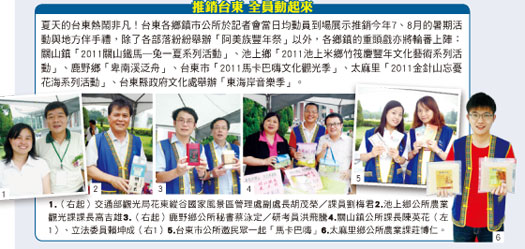 台東縣是全台擁有豐富陸海空3D觀光資源的好地方,「2011年台灣熱氣球嘉年華會」將於7/1∼8/31展開,屆時北利時、荷蘭、美國、瑞士、加拿大、紐西蘭、杜拜、印度、泰國與台灣等10國,約20顆巨型熱氣球,於鹿野高台升空爭艷,民眾除了觀賞熱氣球自由飛行外,亦以500元優惠價格讓民眾免出國即能搭乘5∼7分鐘的熱氣球繫留體驗,期間更規劃有高空攝影、高空婚禮、特技風箏、飛行傘、超輕型載具表演、草原音樂會、熱氣球夏令營等多元活動,可預期今年夏天的台東天空將更為繽紛燦爛。活動詳情可上網站http://vaccineee.weebly.com/index.html。