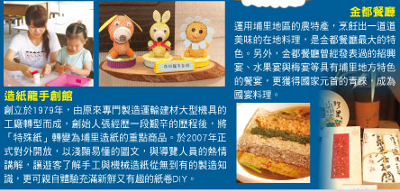 經濟部中小企業處處長賴杉桂表示,OTOP(One Town One Product,一鄉一特產)是經濟部中小企業處推動的地方特色產業輔導政策,藉由專業輔導團隊與業者的合作,運用在地資源,提昇商圈能量與感染力,導入創意、服務及品牌概念,發展策略聯盟及行銷通路,將經濟效益轉化為觀光收入。今年度,經濟部中小企業處結合了旅遊業,發展精緻化與特色化的套裝行程,希望可藉此提昇地方產業的市場競爭力,以及滿足多元觀光旅遊的市場需求,讓地方文化朝國際觀光之路邁進!
