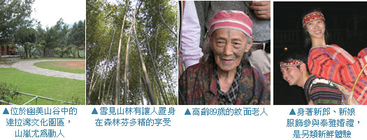 在達拉灣,得以一嚐道地的泰雅族風味餐、參觀泰雅族居住的高腳屋,還能體驗頭巾染布DIY、穿著泰雅族傳統服飾跳舞、搗麻糬、身著新郎新娘服飾參與泰雅婚禮、炭烤DIY等多樣樂趣。另外,還有原住民祭典,及配合地方特產季節性活動如甜柿節、桂竹筍節等,精采有看頭。而自4月中旬開始的桂竹筍節,開幕當天有在臉上貼紋面圖騰、嘗試竹製水杯DIY、探訪高齡89歲的紋面老人等活動,十分有趣。即日起至6月底前往泰安,除能體驗泰雅文化外,也能走進竹林親身感受採桂竹筍的樂趣。