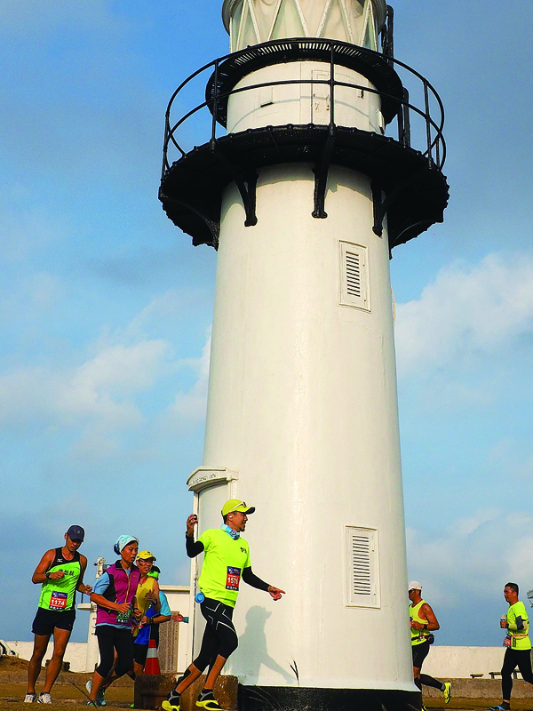 ▲菊島澎湖跨海馬拉松,沿途會經過一系 列澎湖知名景點,如漁翁島燈塔。