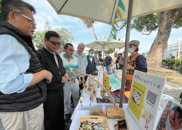 ▲交通部觀光局局長張錫聰(左2)參觀超過200項特色旅遊亮點的「珍珠商品」。