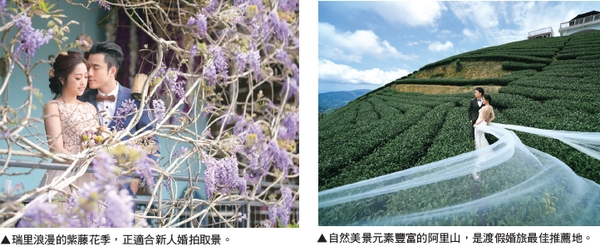 此外,一系列活動還包含星光下帶領新人感受阿里山西北廊道瑞里紫色山城浪漫氛圍、瑞里及太興等特色景點拍攝阿里山唯美地景婚紗照、體驗封茶DIY的體驗及享用情人套餐、浪漫紫藤花婚禮歌手獻唱祝福&舞會,在證婚人的帶領下宣讀愛情誓言、簽署結婚書約、交換信物等,為下個人生階段互許終生攜手邁向幸福。