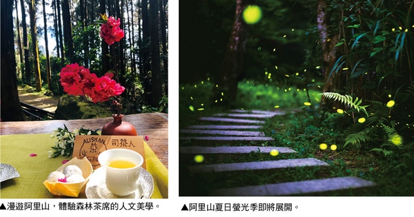 阿里山變幻萬千的雲海,燦爛的春櫻與點點夏螢,一杯回甘好茶與咖啡香,還有幽默風趣的鄒式款待,交織出阿里山旅遊的多種風貌,除了跟著森林小火車體驗上山的滋味,還可以把腳步放慢一些,到山上住一晚,體驗悠閒時刻!