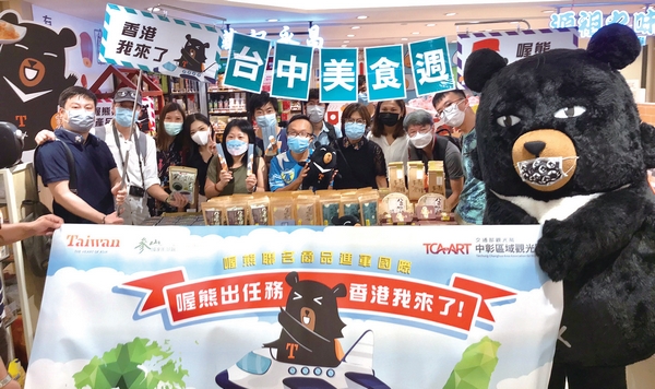 疫情期間來台不便,著眼於台灣美食對香港市場深具吸引力,交通部觀光局香港辦事處與參山國家風景區管理處協助轄區觀光圈業者前進香港,8/30與香港華記永昌公司於馬鞍山千色百貨合作舉辦「喔熊出任務香港我來了─台中美食週」開幕活動,台灣觀光代言人喔熊組長駐香港分身特別現身會場為中台灣美食代言。