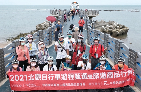 為推廣「2021自行車旅遊年」,交通部觀光局北海岸及觀音山國家風景區管理處(下稱北觀處)除了完成北海岸「雙灣」、「灣塔」、「萬金」自行車道沿線景觀設施改善,並在動線端點規劃公共自行車租賃站、大眾運輸及多元服務設施,同時也在官網設置自行車旅遊專區,整合轄區自行車旅遊資源及多條精選遊程,提供車友更完善的資訊。今年更首次辦理甄選活動,自4月開始公開徵件,5月進行初審及複審兩輪評審,由9位產、官、學界評審從43件參選遊程中選出金牌、銀牌與銅牌遊程,以及3條創新特色遊程,於9/15、9/23辦理踩線活動以及頒獎,邀請媒體與知名運動網紅們一起實地體驗,盡享海陸風光與打卡美景。